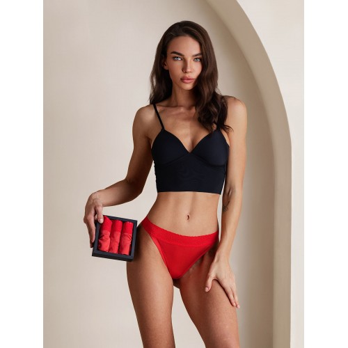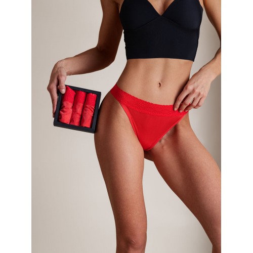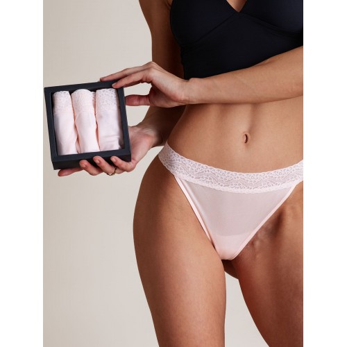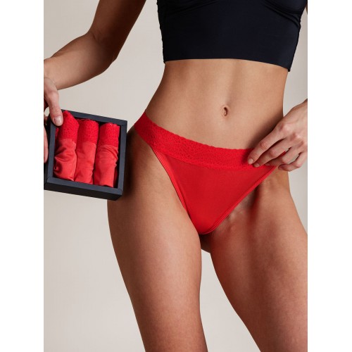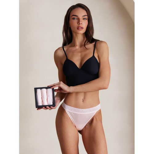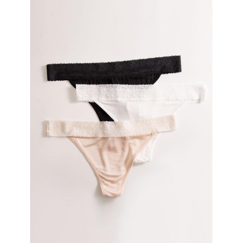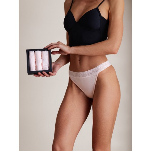 3Pcs Pure Silk Sexy Lace Flower Thong Panties (Bra NOT Included)
