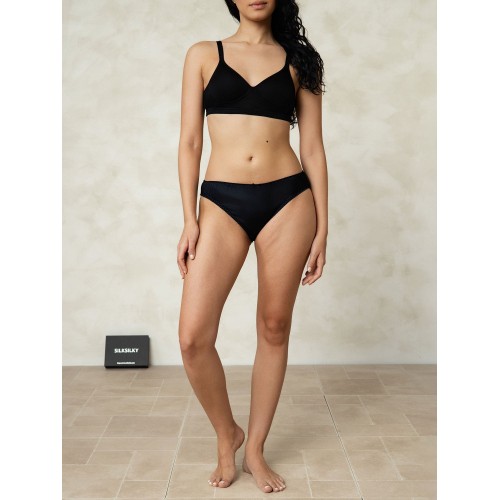 Fabric Tips: 100% Mulberry Silk.No harmful substances. Classic bikini fit. offers moderate coverage. complements most body shapes. Low-rise waistband. sits comfortably below the hips. accentuates natural silhouette. Delicate scalloped trim along edges for a feminine touch. Small decorative bow at front center for added charm. Details: Crafted from pure silk. these bikini-style panties provide a smooth. breathable feel with natural sheen. featuring a low-rise design and delicate scalloped trim for an elegant. luxurious everyday essential.